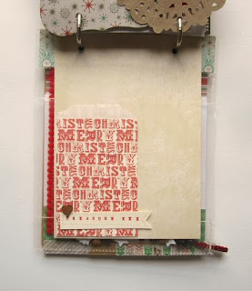 The last page is the envelope page from the mini album that I've embellished with the Pretty Little Studio Merry Christmas diecut and then one of the stamps from the Basic Grey paper.