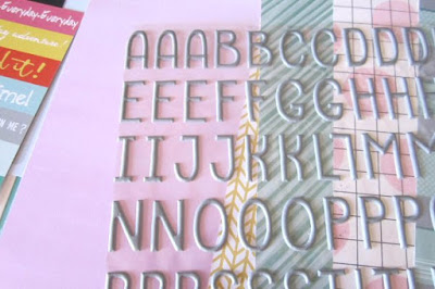 The alphabets in the kit are a good neutral so you'll be able to use them on any of the papers. They have solid 'middle' bits too which will help them to stand out when you use them on the more heavily patterned papers: